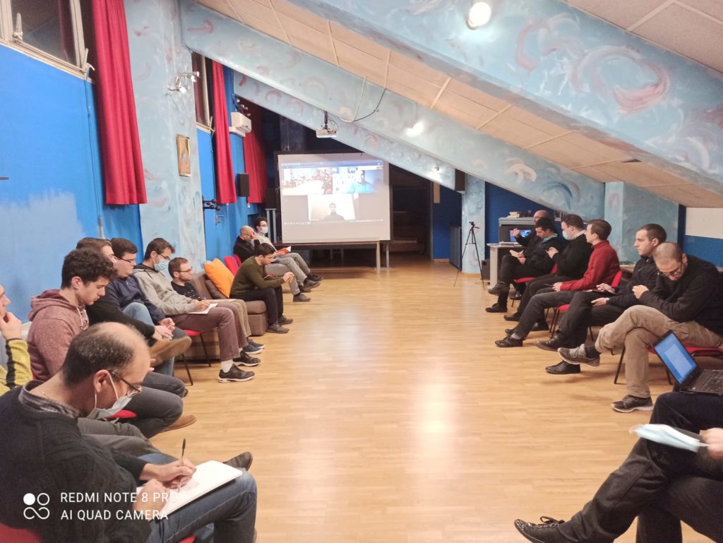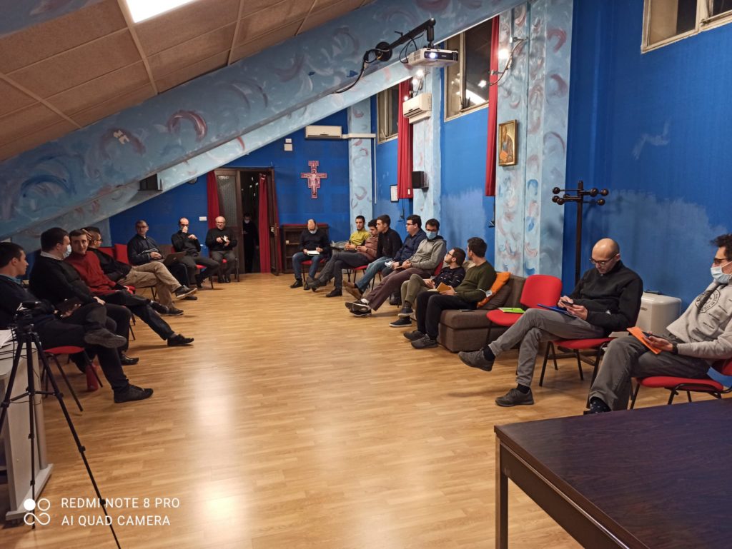 L’incontro di condivisione in forma mista. Alcuni erano collegati tramite internet. E’ una cosa che abbiamo imparato in questo tempo.